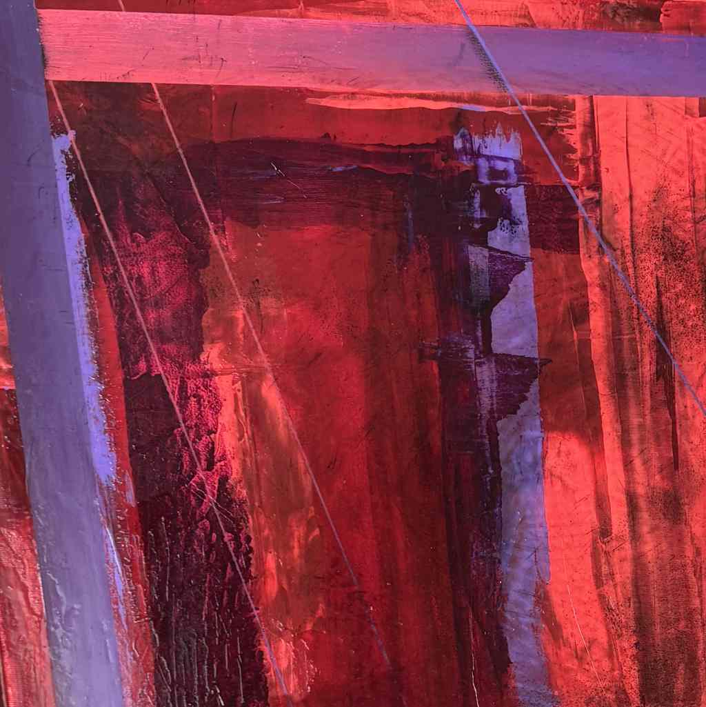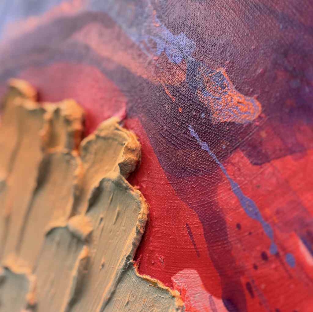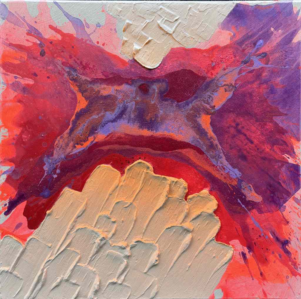 Outburst captures the instant where energy breaks free. Layers of red, violet, and orange collide with textured calm, revealing the raw beauty of release.