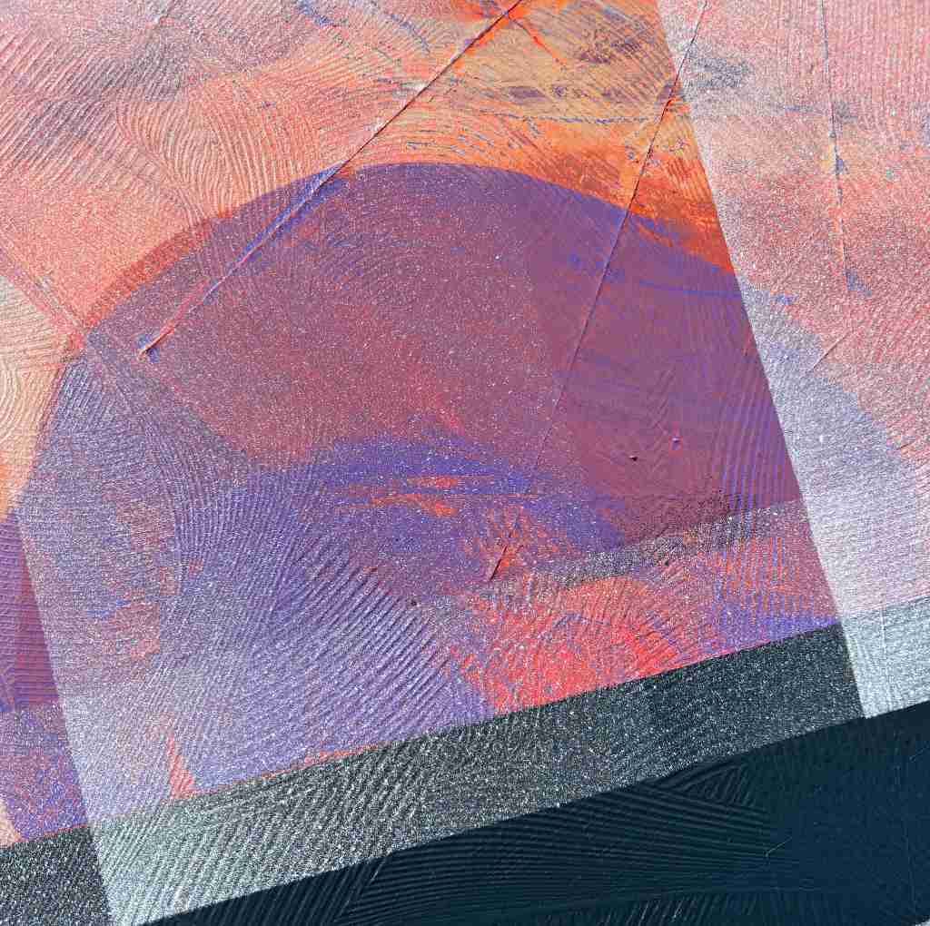 Framed Out plays with the idea of boundaries and transitions. It combines bold colours and textures in a seemingly framed yet open composition. The work invites the viewer to question the illusion of a frame and explore the flowing, vibrant colour gradients that transcend defined boundaries.